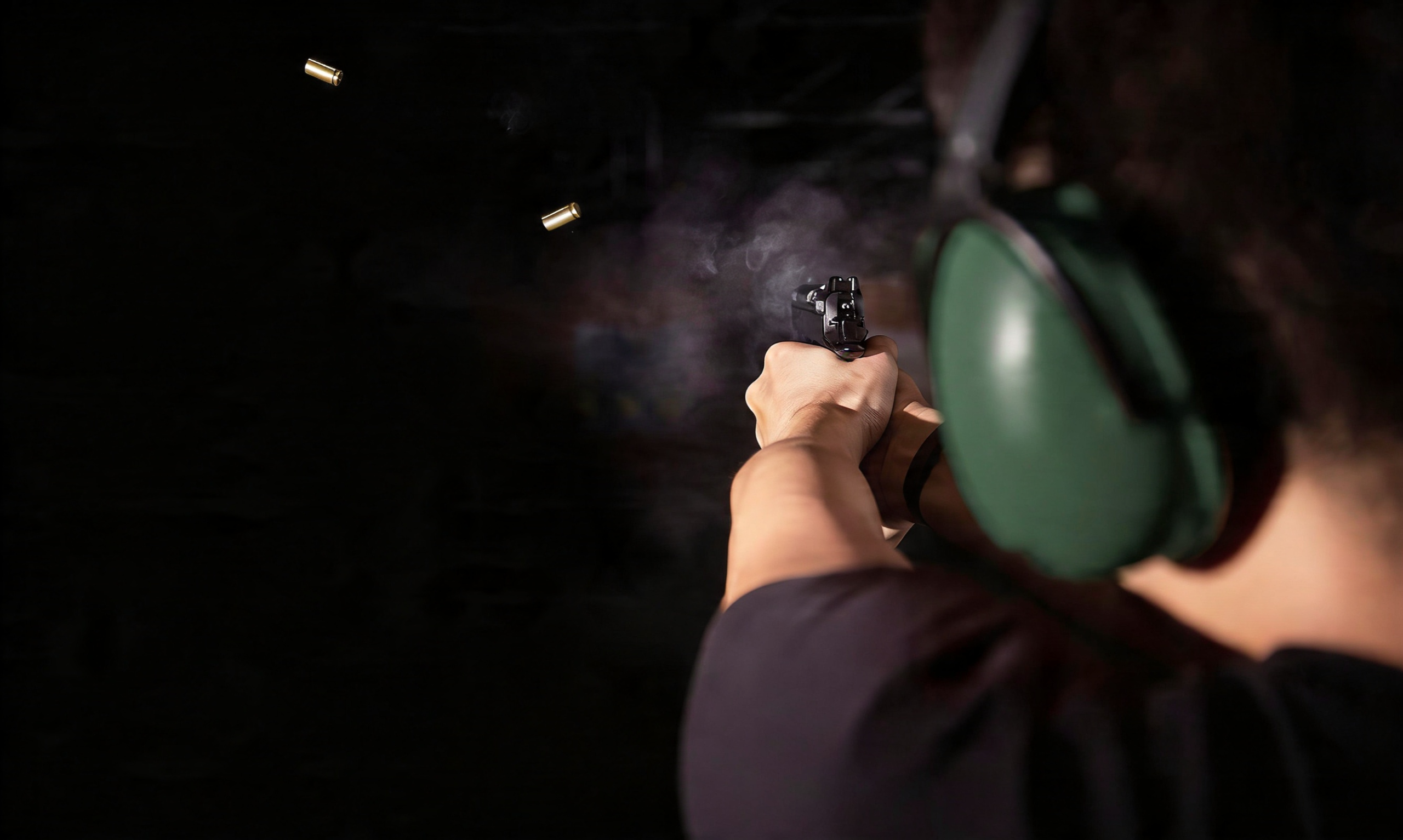 Teste armas curtas, longas e automáticas em estandes modernos e climatizados.